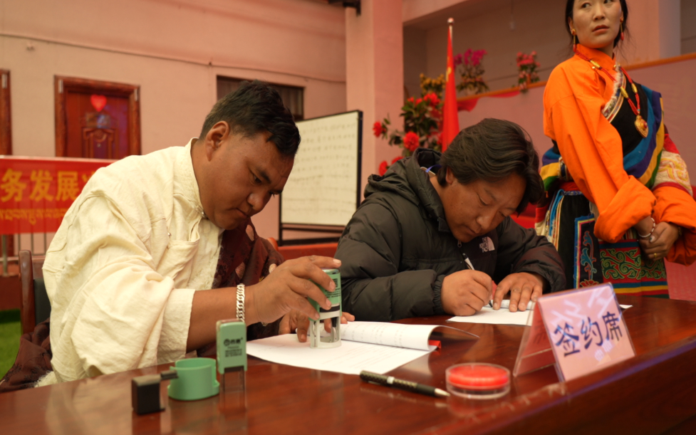 那曲市色尼區(qū)古露鎮(zhèn)央礱汽車租賃公司負(fù)責(zé)人與駕駛員簽訂安全協(xié)議。