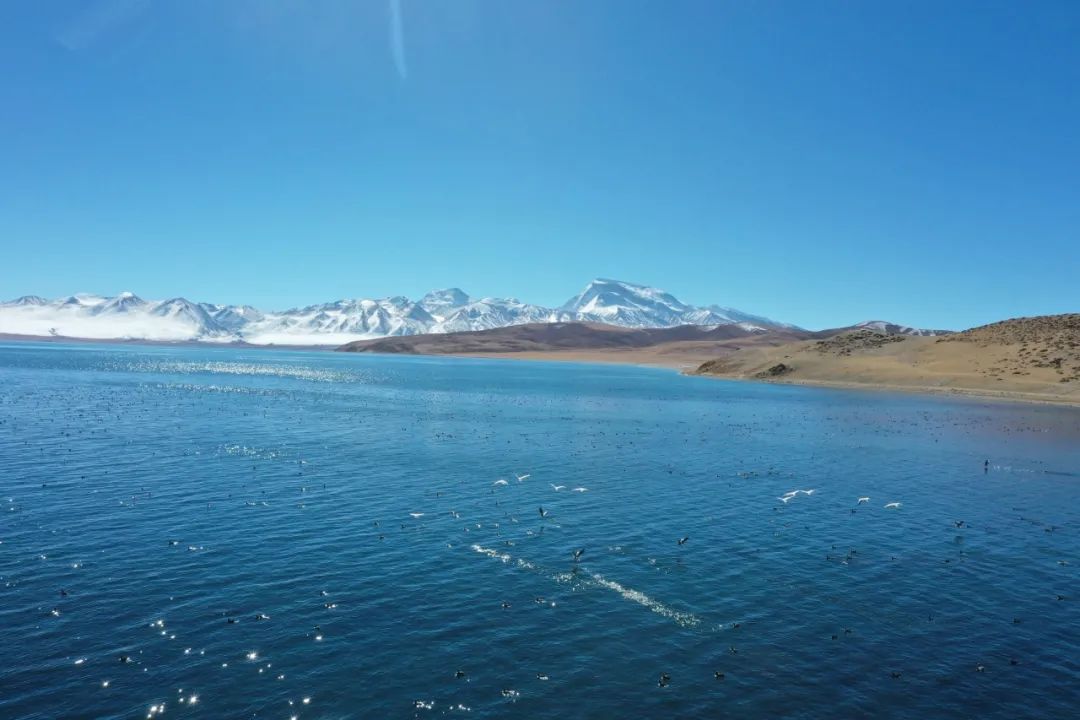 夏季的普莫雍錯,湖水清澈,冬天的普莫雍錯湖面會隨著溫度降低結(jié)冰,表層通透可見湖底,裂紋蔓延整個湖面,在陽光的照射下,呈現(xiàn)出極致的藍(lán),美麗又浪漫,有著世界海拔最高、中國最大的藍(lán)冰湖美譽(yù),也被稱為“中國的貝加爾湖”,它所擁有的是西藏也是中國最夢幻純凈的藍(lán)色。