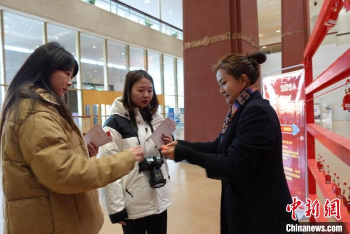 當(dāng)日上午,西藏博物館中央大廳聚集了許多參加現(xiàn)場(chǎng)活動(dòng)的游客。游客以隨機(jī)抽福袋、領(lǐng)獎(jiǎng)品的形式參與活動(dòng)。參與者紛紛表示在新年的第一天開(kāi)展這樣的活動(dòng)很有意義。針對(duì)元旦期間來(lái)館參觀(guān)的游客,西藏博物館還制作有館藏文物元素的主題紀(jì)念賀卡供游客留念。