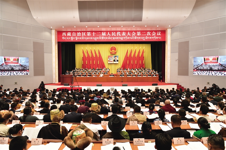 西藏自治區(qū)十二屆人大二次會議開幕現(xiàn)場。 記者 次仁平措 攝