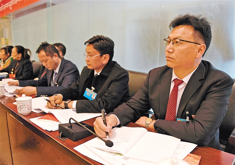 阿里代表團(tuán)審議政府工作報告。記者 旦增蘭澤 攝