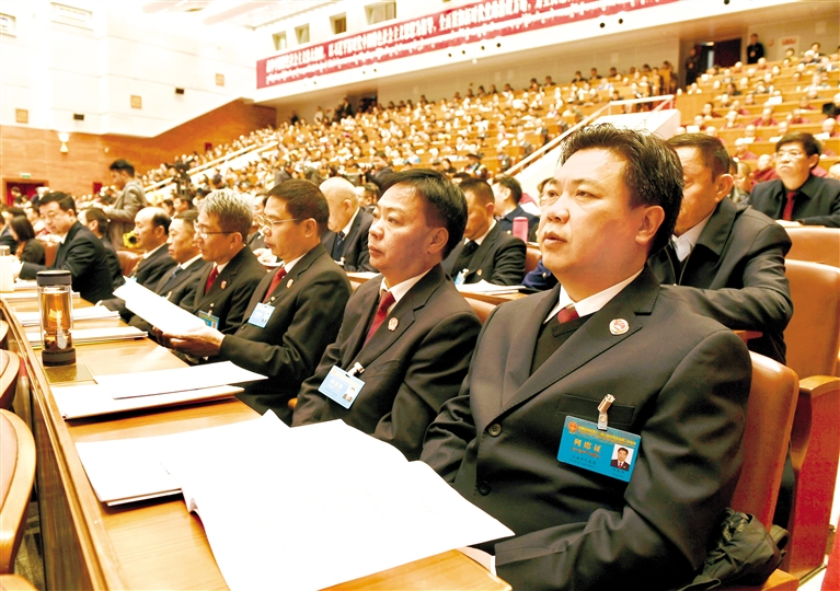 圖為列席人員認(rèn)真聆聽政府工作報告。記者 旦增蘭澤 攝