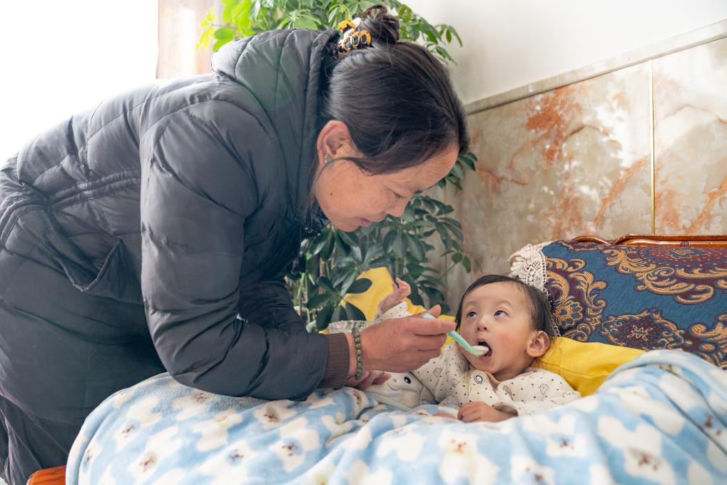 1月8日,愛心媽媽巴桑在給一歲半的拉巴扎西喂飯。新華社照片,拉薩,2024年1月9日新華社發(fā)(丁增尼達(dá)攝)