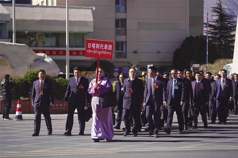 日喀則代表團(tuán)步入閉幕會(huì)場。