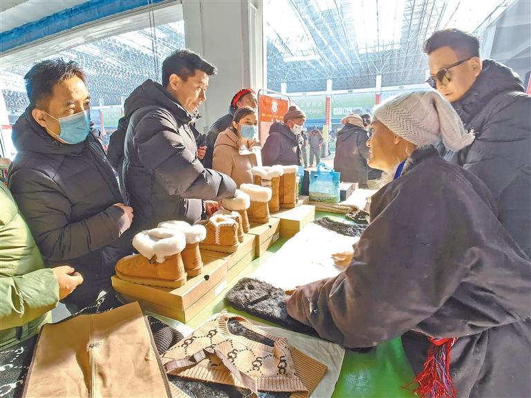 圖為市民購買嘎措羊皮雪地靴。本報記者 趙書彬 攝
