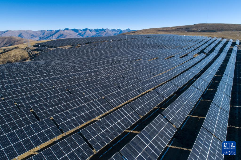 西藏才朋光伏電站(1月15日攝,無人機照片)。新華社記者 旦增尼瑪曲珠 攝