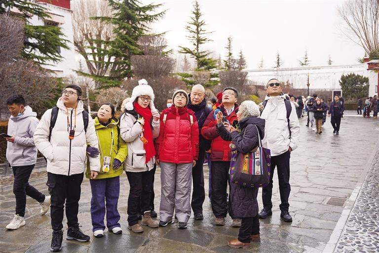 1月16日一大早,拉薩下起了2024年的第一場雪,雪中的布達(dá)拉宮有著別樣的美麗。王碧秀帶著幾位從上海來的游客參觀了這座擁有千年歷史的宮殿,細(xì)致的講解隨著雪花一起,將雪域高原厚重的歷史文化送進(jìn)了游客的心里,撒下了希望的種子??傆幸惶欤@些種子會(huì)生根發(fā)芽,帶著王碧秀和無數(shù)導(dǎo)游們的期冀,開出絢麗的花朵,吸引更多人來到西藏、愛上西藏。