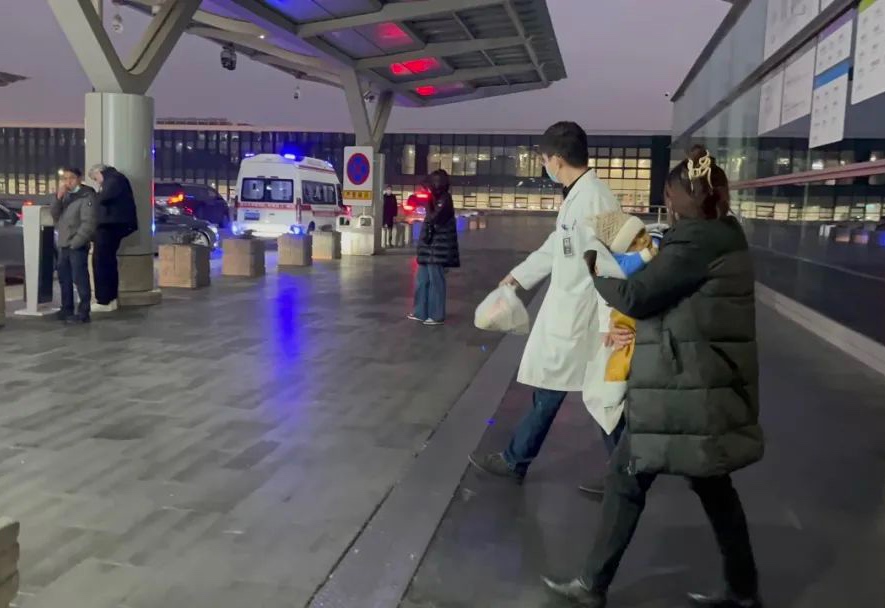 1月18日晚,浙大二院醫(yī)生接上德勒和他的媽媽,救護(hù)車也等候在機(jī)場(chǎng)外。新華社發(fā)(金宇婷攝)