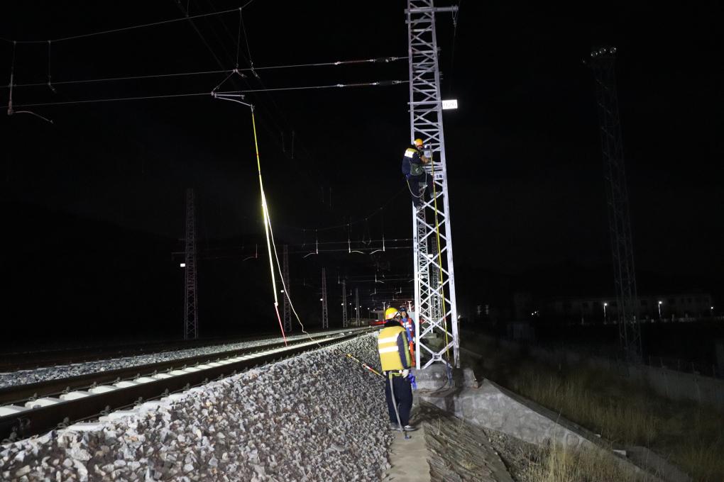 接觸網(wǎng)源源不斷地為電力火車提供電力,就像電氣化鐵路的“血管”?!拔覀兙褪歉咴姎饣F路的醫(yī)生,每天夜里,為它的‘血管’做一場(chǎng)細(xì)致的手術(shù),保證接觸網(wǎng)安全暢通。”李積王說(shuō),細(xì)致的夜間作業(yè)確保了拉林鐵路在春運(yùn)期間能夠安全、高效地運(yùn)行。