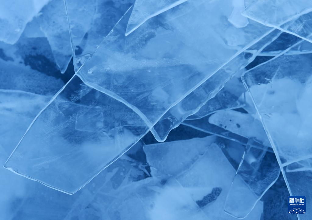 瑪旁雍錯湖面上的冰像碎玻璃一樣透亮(1月29日攝)。新華社記者 關(guān)明輝 攝
