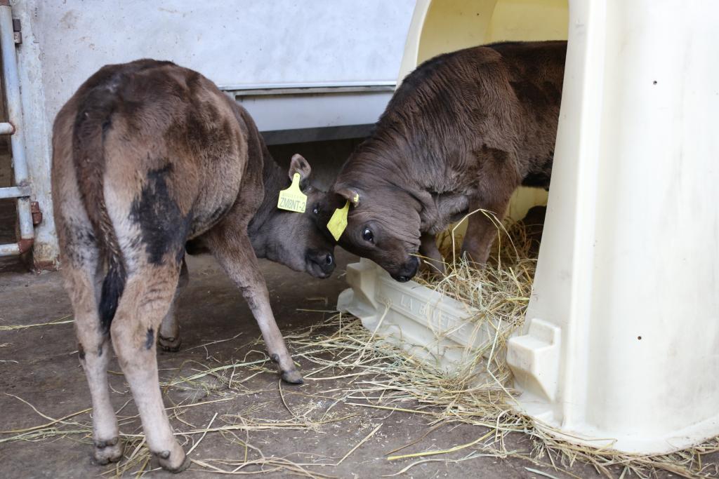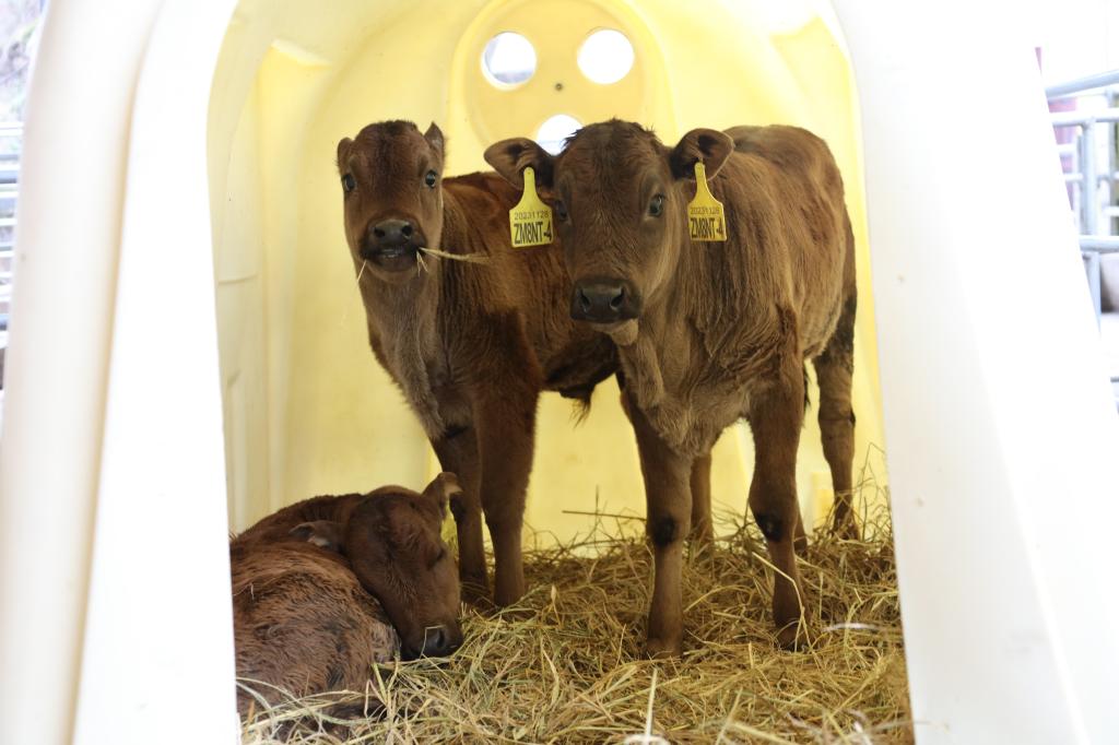 記者在位于云陽縣鳳鳴鎮(zhèn)的肉牛繁育場看到,8頭克隆牛目前狀態(tài)良好,其中1頭樟木牛和3頭阿沛甲咂牛為剖腹產(chǎn)。除了一頭剛出生3天的阿沛甲咂牛暫時臥著不動之外,其他7頭克隆?;顫娍蓯?。