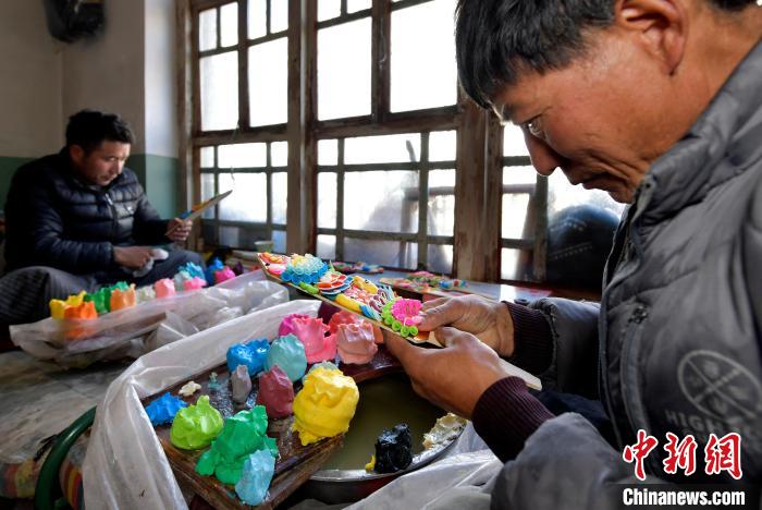 雙手被冷水泡得紅腫、雙腳一直盤腿而坐……制作過程固然辛苦,卻也讓米瑪一家收入頗豐?!爸谱鳌⑹圪u酥油花,每年人均有一萬元(人民幣,下同)左右的收入。這對于農(nóng)閑時的我們來說,還是很不錯的?!泵赚斦f,接下來他會教孫輩來制作酥油花,讓年輕一代慢慢學(xué)習(xí)了解、傳承這項技藝。