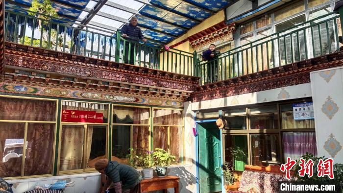 “樓上樓下都有陽光,很暖和?!?月2日,西藏網(wǎng)絡媒體新春走基層活動記者一行來到山南市瓊結縣昌嘎村,此時該村四組村民多吉在家里的二樓陽光房內準備過年用的經幡,他的老伴則在一樓庭院內整理衣物,午后的陽光透過玻璃窗落在沙發(fā)上,坐在這里感覺不到冬的寒意,郁郁蔥蔥的綠植讓這所溫馨的居所生機勃勃。