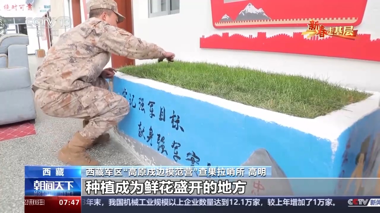 西藏軍區(qū)“高原戍邊模范營(yíng)”查果拉哨所 高明:我們的戰(zhàn)士現(xiàn)在正在養(yǎng)護(hù)我們的花草。在海拔5318米的這個(gè)地方,我們的花草非常難長(zhǎng),為了能夠營(yíng)造這種氛圍,我們還是想把這個(gè)地方能夠種植成為鮮花盛開(kāi)的地方。