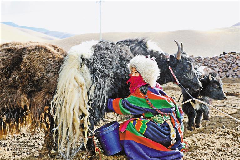 “這些都是咱們村合作社的牦牛,我們給合作社放牧、擠奶、制作酥油和奶渣,不僅有務(wù)工補貼,年底還能分紅。去年,我們家總收入有6.7萬元左右,日子真是越過越有盼頭了?!倍静輬錾?,正在放牧的牧民桑嘎卓瑪高興地說。