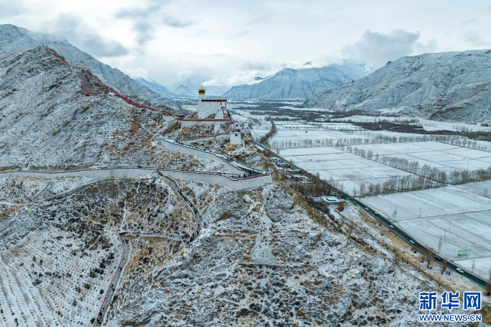15日,西藏多地迎來降雪天氣,雪后的雍布拉康更顯莊嚴,不少游客前來游玩、拍照,欣賞冬日別樣景致。