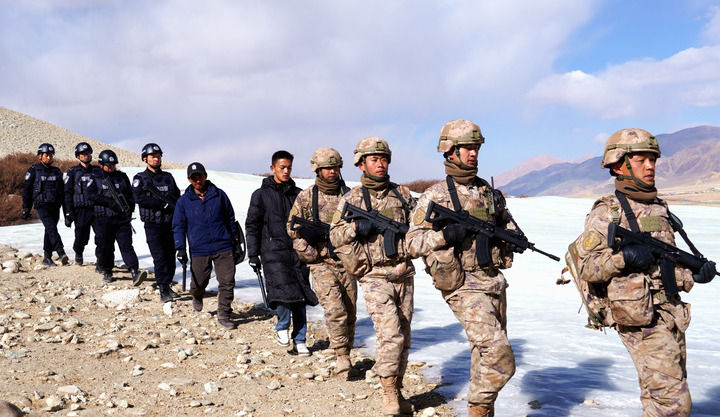 在西藏阿里地區(qū)噶爾縣扎西崗鄉(xiāng),黨政軍警民等力量在邊境地區(qū)巡邏(2024年1月17日攝)。新華社記者 陳尚才 攝