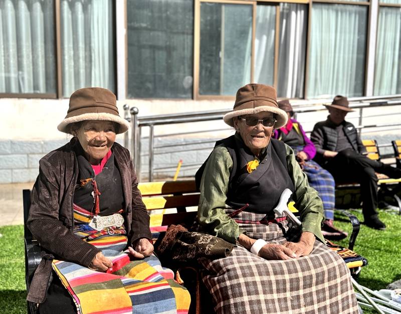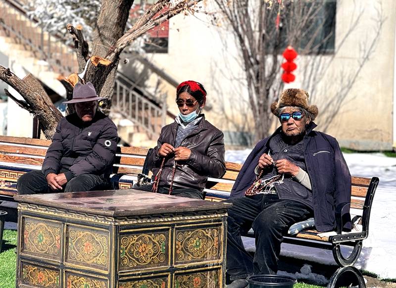 老人們?cè)谠鹤永飼裉?yáng)。瓊達(dá)卓嘎攝