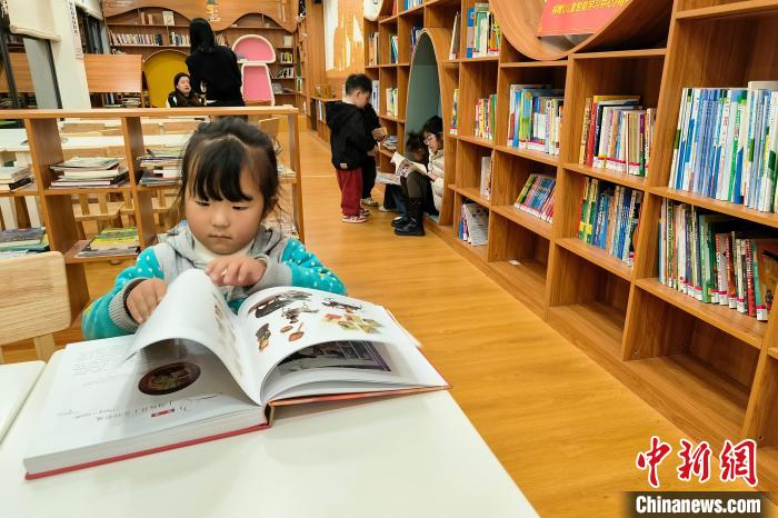 2023年12月22日晚,一位兒童在墨脫縣蓮花書屋翻閱畫冊(cè),據(jù)悉該書屋有圖書上萬(wàn)冊(cè),是西藏最大的縣級(jí)書屋。中新社記者 江飛波 攝