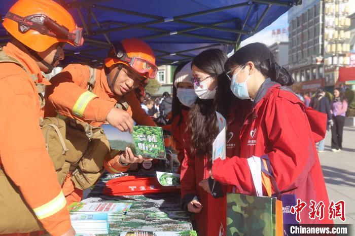 圖為消防員正在開展防火知識普及。西繞拉翁 攝