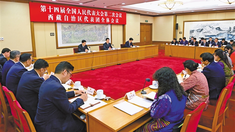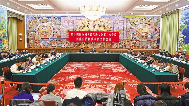 3月6日,西藏代表團(tuán)舉行全體會(huì)議,傳達(dá)學(xué)習(xí)習(xí)近平總書(shū)記在參加十四屆全國(guó)人大二次會(huì)議江蘇代表團(tuán)審議時(shí)的重要講話精神,繼續(xù)審議政府工作報(bào)告,審查計(jì)劃報(bào)告和草案、預(yù)算報(bào)告和草案。