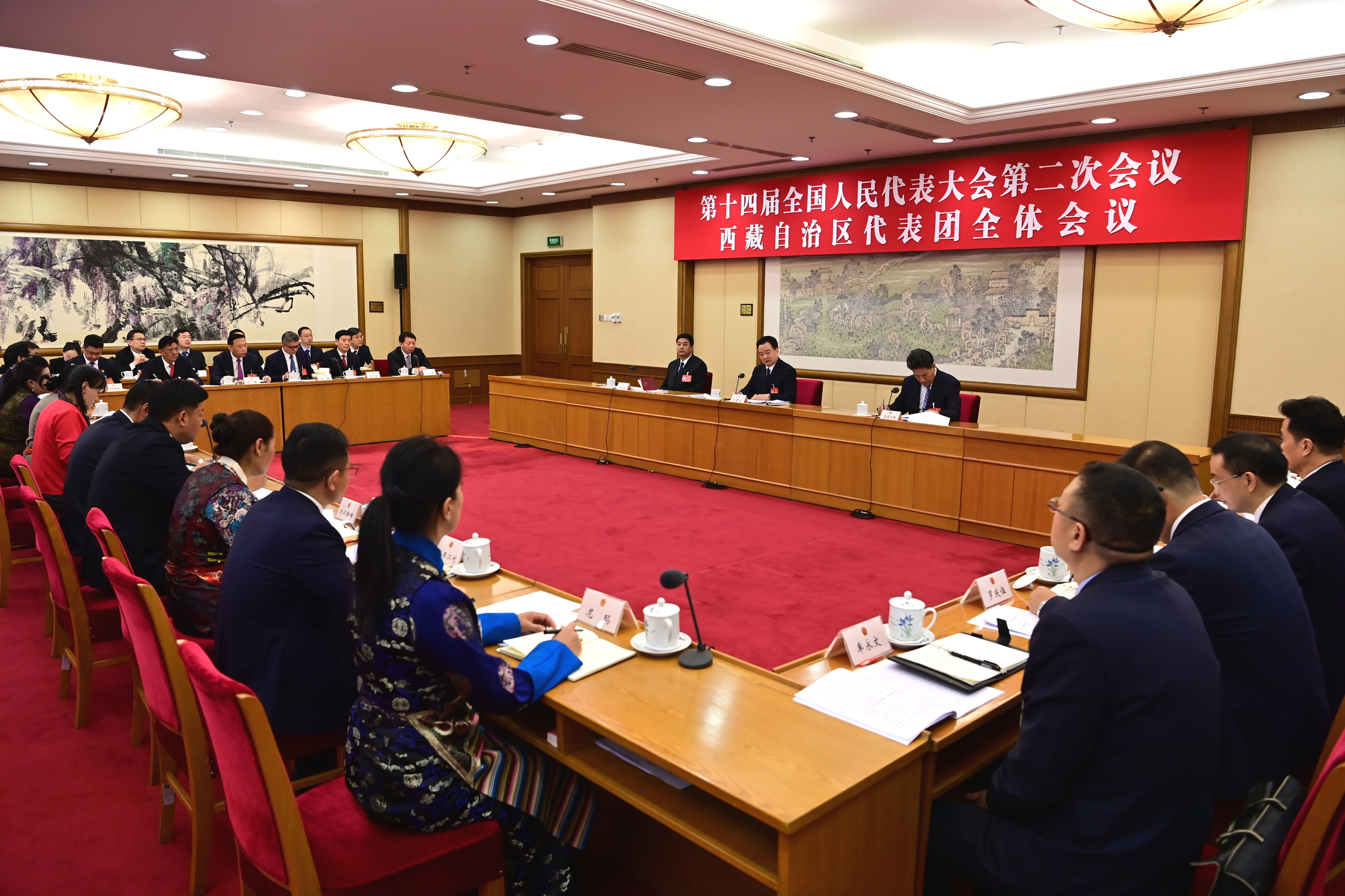 西藏代表團(tuán)審議政府工作報(bào)告,西藏代表團(tuán)團(tuán)長、自治區(qū)黨委書記王君正講話。記者 旦增西旦 攝