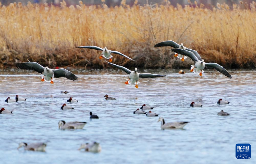 鳥兒在拉魯濕地休憩飛翔(3月8日攝)。新華社記者 張汝鋒 攝