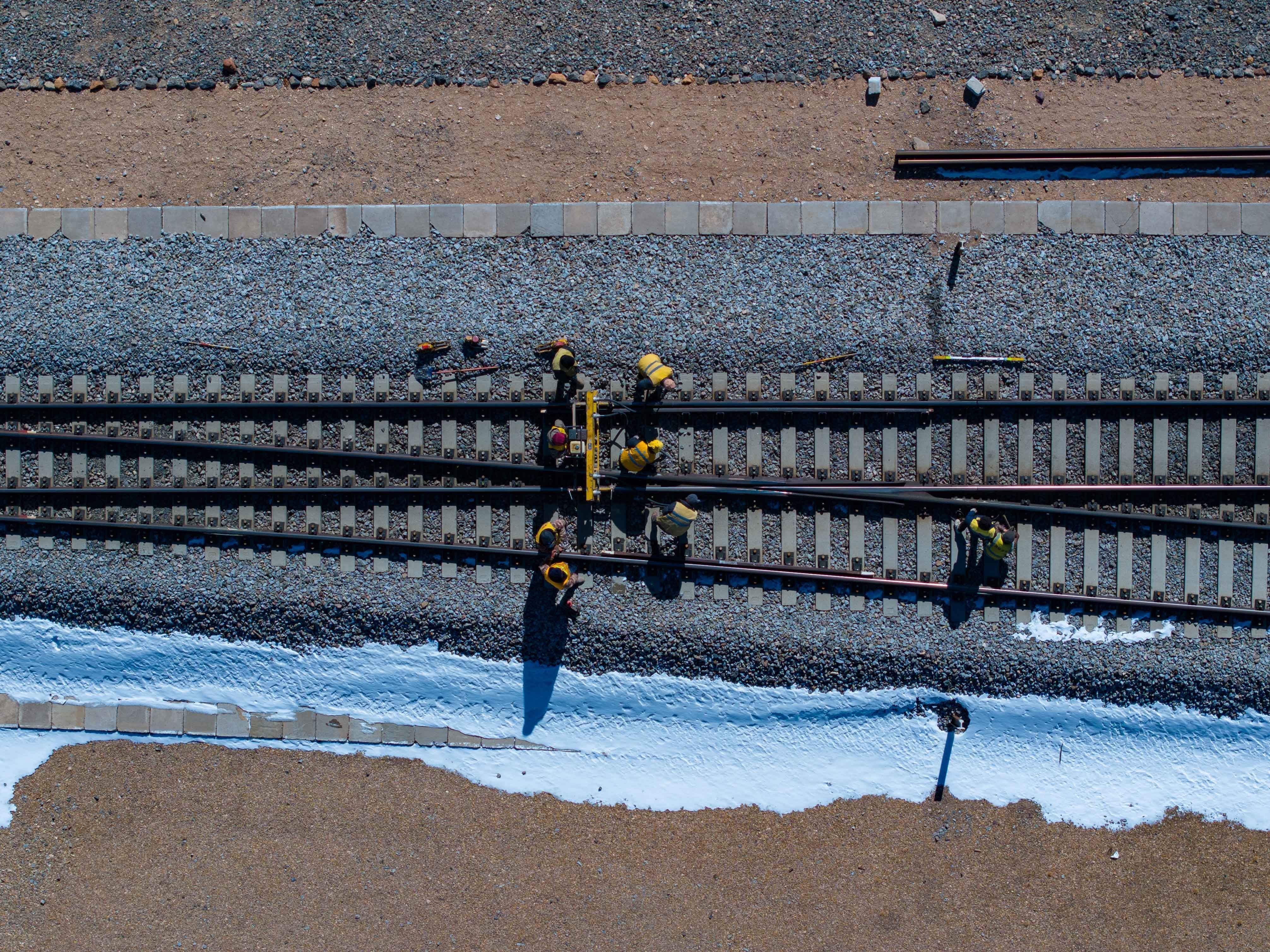 他帶著工人們迅速出動(dòng),抵達(dá)現(xiàn)場(chǎng)時(shí)已經(jīng)是過了12點(diǎn)。這時(shí)天窗鄰近,他們迅速做好準(zhǔn)備,第一時(shí)間沖到鐵軌上施工。黑夜里,幾個(gè)微小的燈光在茫?;囊吧匣蝿?dòng),隱約區(qū)分出鐵路的軌跡。