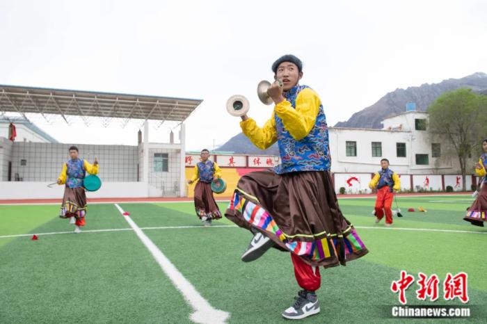 西藏加查縣中學學生在練習非遺昌果卓舞。貢嘎來松 攝