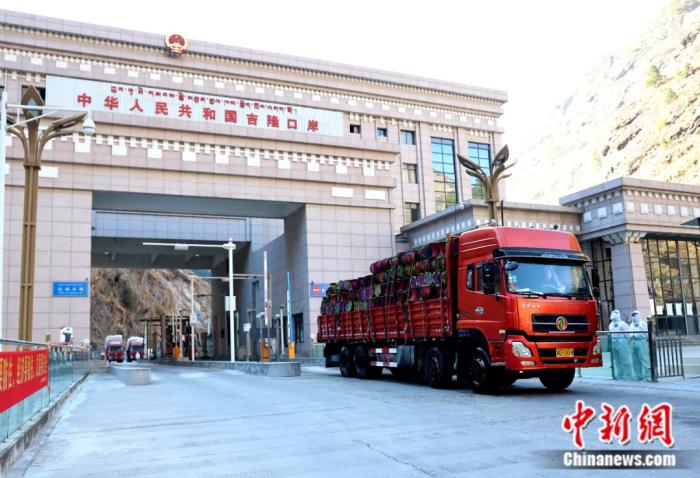 貨車駛入位于西藏自治區(qū)吉隆縣的吉隆口岸。吉隆融媒體中心 供圖