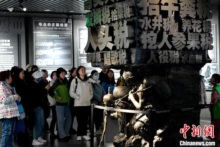圖為觀眾在西藏百萬(wàn)農(nóng)奴解放紀(jì)念館參觀。李林 攝