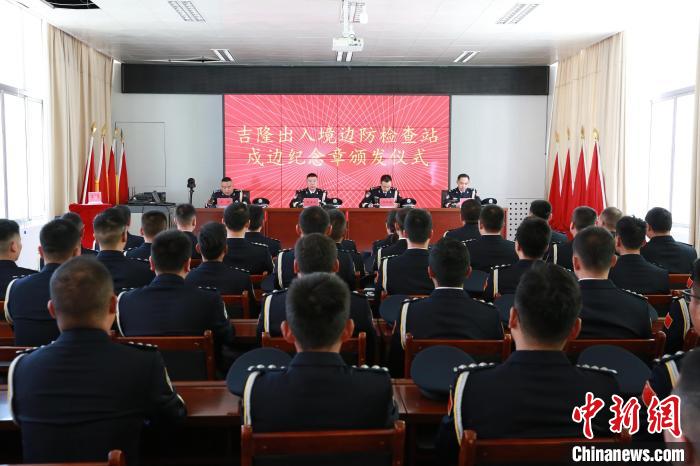 2日,西藏吉隆出入境邊防檢查站在吉隆口岸舉行戍守邊疆紀(jì)念章頒發(fā)儀式,20名移民管理警察獲頒銅制戍邊紀(jì)念章。