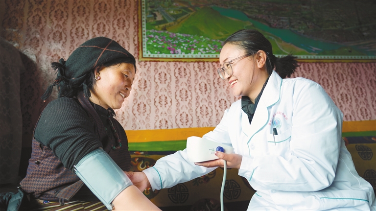 家庭簽約醫(yī)生為群眾測(cè)量血壓。
