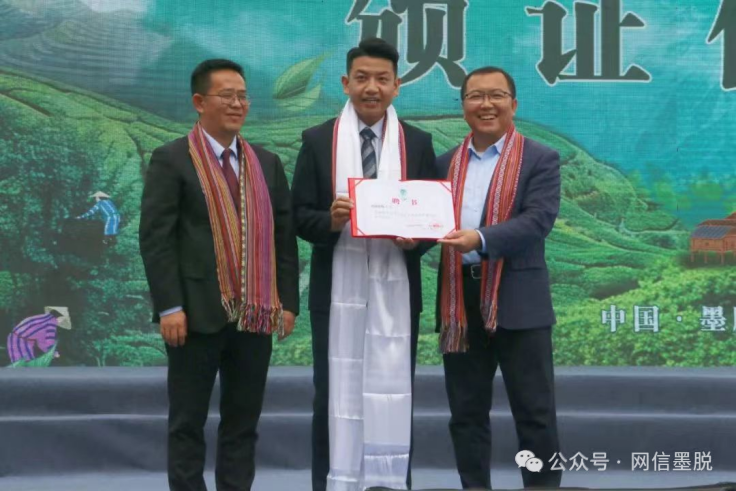伴隨著春風中浸染的裊裊茶香,開幕式上的一段視頻吸引了觀眾們的注意,視頻中丹臻群佩在央視主持人大賽的舞臺上向全國人民展示了墨脫通車十年以來的壯美巨變,講述了茶葉為墨脫人民的生活帶來的嶄新面貌,他的傾情推介帶領著觀眾再次感受了墨脫的極致美景,體會了新時代墨脫人民欣欣向榮的美好生活。在現(xiàn)場,林芝市委常委、墨脫縣委書記符永波為丹臻群佩頒發(fā)“中國·墨脫文化旅游形象大使”證書。隨后,符永波宣布,2024年墨脫縣首屆茶文化旅游季正式開幕!