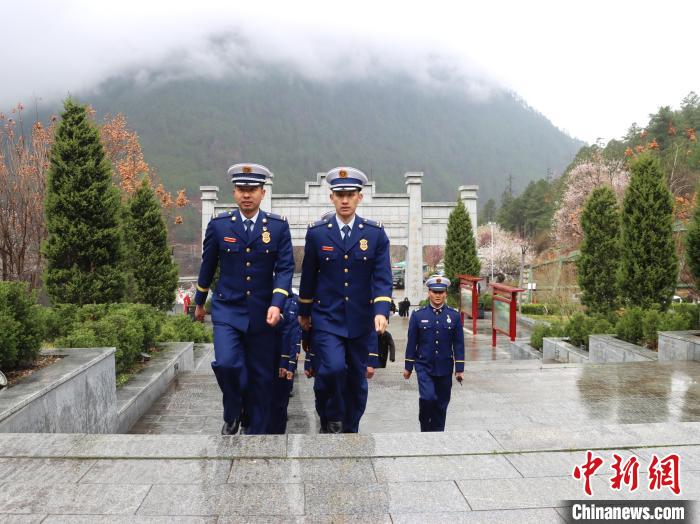 在察隅縣英雄坡紀(jì)念園革命烈士紀(jì)念碑前,消防救援人員面對(duì)鮮紅的黨旗莊嚴(yán)宣誓。隨后,大家來(lái)到烈士陵園,追憶先烈走過(guò)的光輝戰(zhàn)斗歷程,緬懷他們的豐功偉績(jī)。懷著對(duì)先烈的崇高敬意和沉痛哀思,隊(duì)員們?yōu)榱沂磕贡?、擦拭、脫帽默哀?/p>