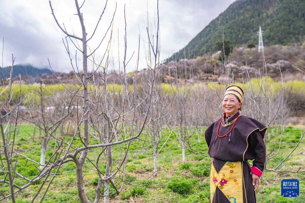 查果在自家果園里(4月1日攝)。新華社記者 孫非 攝