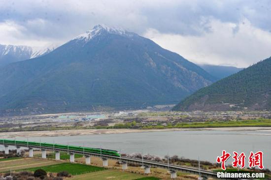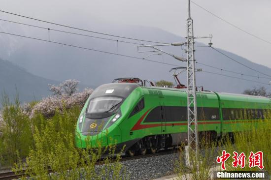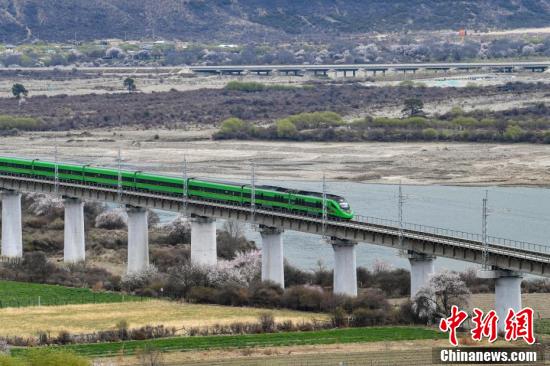 復(fù)興號動車組不僅是一種便捷的交通方式,更成為了一種獨特的旅游體驗,讓游客能夠近距離欣賞到西藏林芝春季獨特的自然美景。圖為穿梭在桃花林中的拉林鐵路高原復(fù)興號。