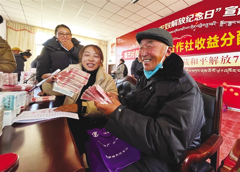 拉薩市城關(guān)區(qū)納金鄉(xiāng)嘎巴村分紅儀式現(xiàn)場(chǎng)。 西藏日?qǐng)?bào)記者 旦增蘭澤 攝