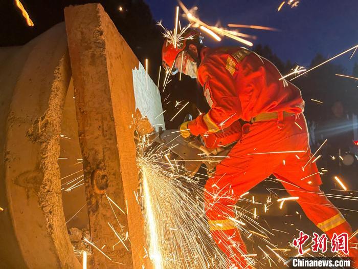 地震救援競賽現(xiàn)場,消防員正在進(jìn)行破拆。姚天銳 攝