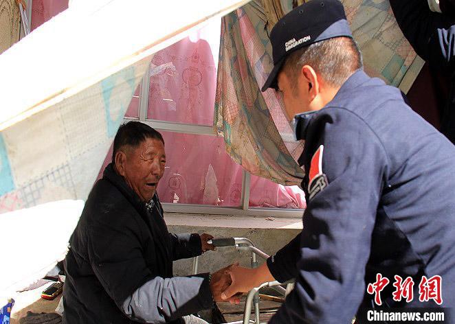 圖為民警上門為桑珠老人服務(wù)。次仁頓珠 攝