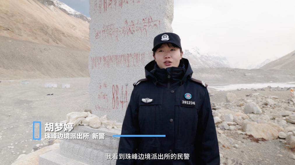 “珠穆朗瑪峰世界最高峰對(duì)于我來說不再是以前課本上那遙不可及的存在,而是我已經(jīng)抵達(dá)并駐守的地方,我也如愿把我最美好的青春再次獻(xiàn)給了祖國(guó),”新警胡夢(mèng)婷堅(jiān)定地說道。