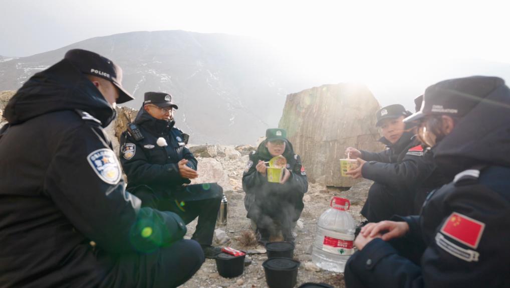 經(jīng)過4個(gè)多小時(shí)的高海拔行走,巡邊隊(duì)伍終于到達(dá)了6000米的巡邏折返點(diǎn)位,也到了巡邏路上的快樂時(shí)刻,吃火鍋!“現(xiàn)在后勤保障到位,無論在野外何處,吃頓熱飯已不是難事”,帶隊(duì)的副所長(zhǎng)次仁加措說道。