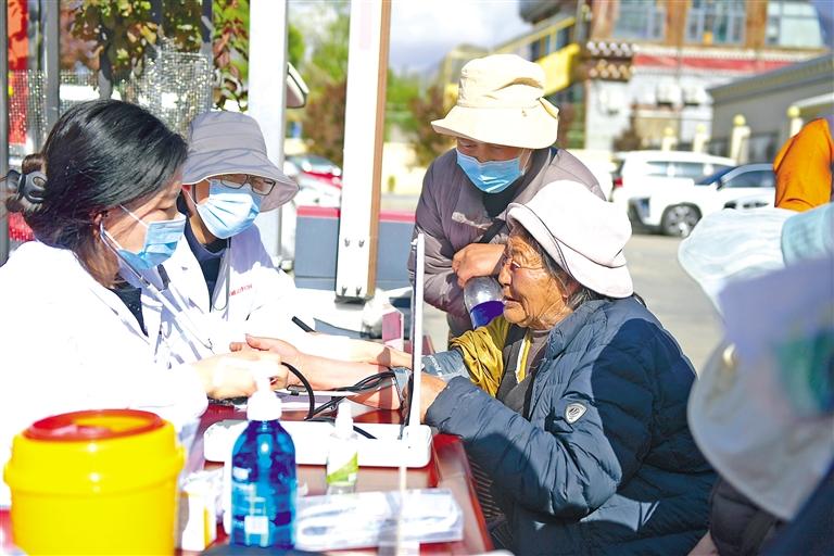 上圖:5月11日,西藏司法警官醫(yī)院聯(lián)合拉薩市城關(guān)區(qū)扎細(xì)社區(qū)黨支部在轄區(qū)開展義診活動(dòng),為市民群眾免費(fèi)檢查身體,普及健康知識。 本報(bào)記者 潘多 攝