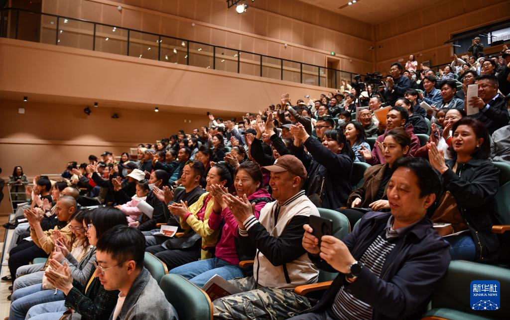 5月20日,西藏傳統(tǒng)民族音樂(lè)會(huì)《吉祥妙音》演出結(jié)束后,觀眾為演員們精彩的演出鼓掌喝彩。新華社記者 晉美多吉 攝