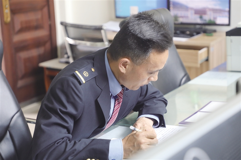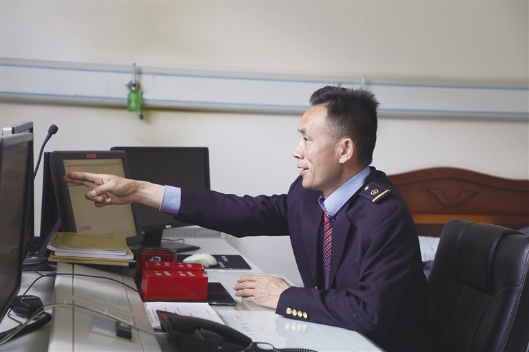 “這里的工作雖然看似單調(diào),實則責(zé)任很大。”賀文貴身穿深藍(lán)色的鐵路制服,胸前佩戴著亮閃閃的工牌,顯得精神抖擻。他像一名嚴(yán)謹(jǐn)?shù)膽?zhàn)士,緊盯著操作臺,確認(rèn)信號,口呼手指?!∽鳛檐囌局蛋鄦T,賀文貴每天的任務(wù)主要是監(jiān)視列車進(jìn)路和區(qū)間動態(tài),保證行車安全。工作中的他認(rèn)真負(fù)責(zé),嚴(yán)格執(zhí)行標(biāo)準(zhǔn)化作業(yè),他常說:即使單人值守,該有的程序、作業(yè)步驟一項都不少,作業(yè)標(biāo)準(zhǔn)必須嚴(yán)格執(zhí)行,保證作業(yè)安全。
