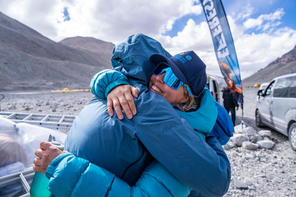 在珠峰登山大本營,盧卡斯·富滕巴赫(右)正在和隊友哈康·埃蘭森聊天交流(5月24日攝)。新華社記者 孫非 攝