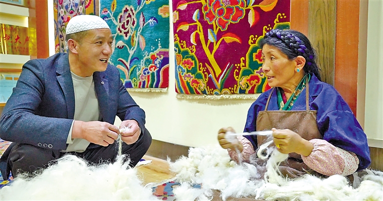 江孜縣組織開展民族文化、民族手工業(yè)、民族飲食、民族服裝等沉浸式體驗(yàn)活動(dòng)。這是回族群眾在體驗(yàn)傳統(tǒng)服裝制作工序。
