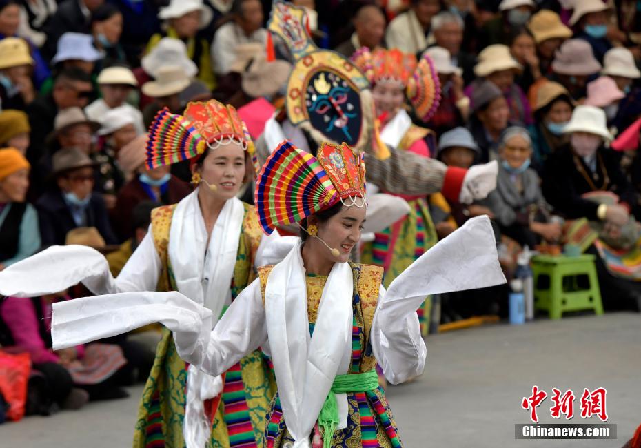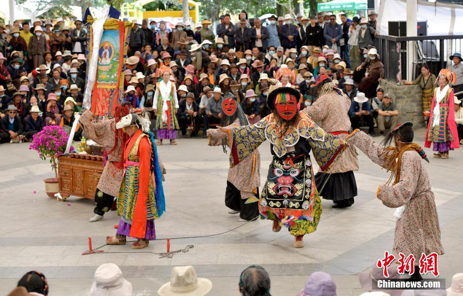 6月12日,藏戲藝人在拉薩市宗角祿康公園表演。從6月9日起,拉薩2024年“藏戲演出季”啟幕。布達拉宮腳下的宗角祿康公園,5支民間藏戲團隊表演的傳統(tǒng)藏戲劇目,吸引當?shù)孛癖姾陀慰颓皝碛^看。李林 攝