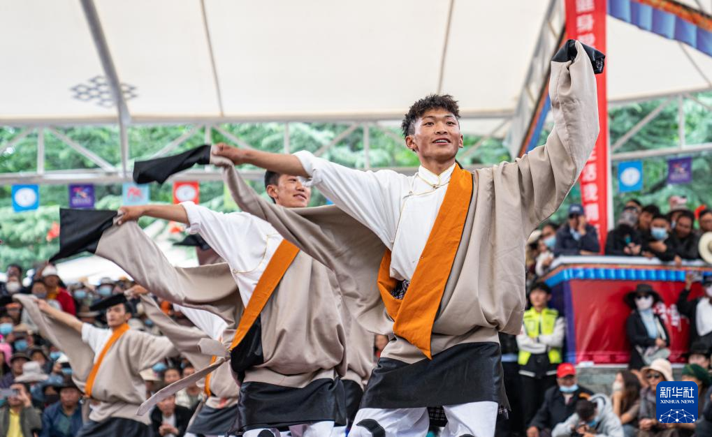 6月14日,參賽者在第二屆拉薩鍋莊舞大賽現(xiàn)場表演。新華社記者 丁增尼達 攝