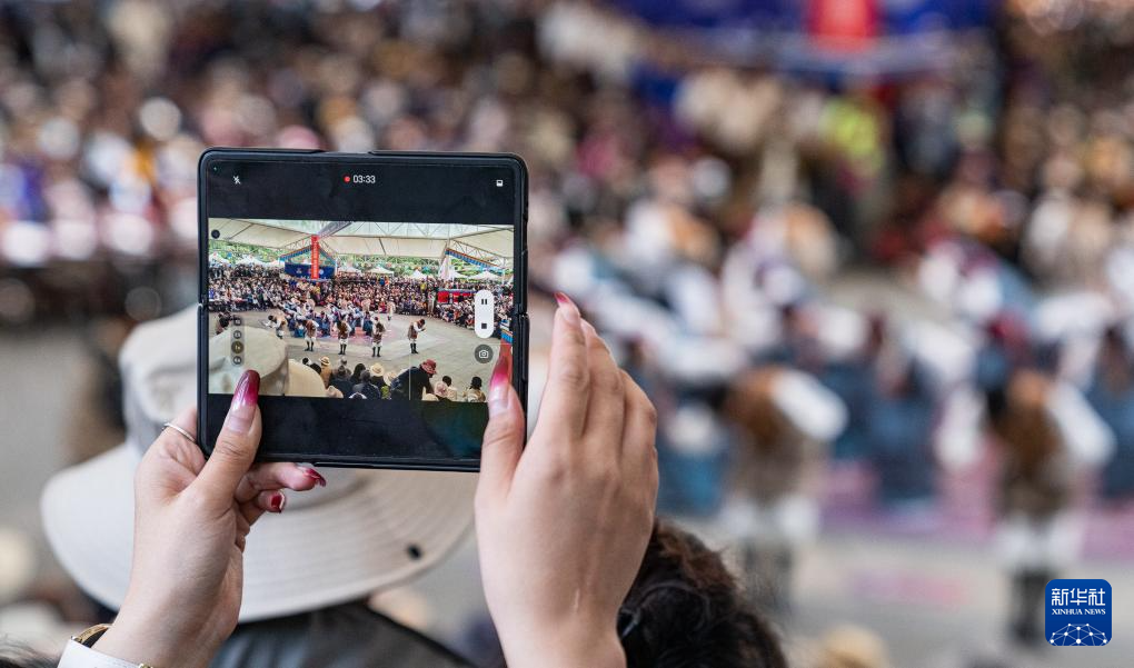 當日,第二屆拉薩鍋莊舞大賽(決賽)在布達拉宮腳下的宗角祿康公園舉辦。經(jīng)過激烈角逐脫穎而出的12支隊伍為市民和游客奉獻了一場歡快的視聽盛宴。新華社記者 黃智琪 攝